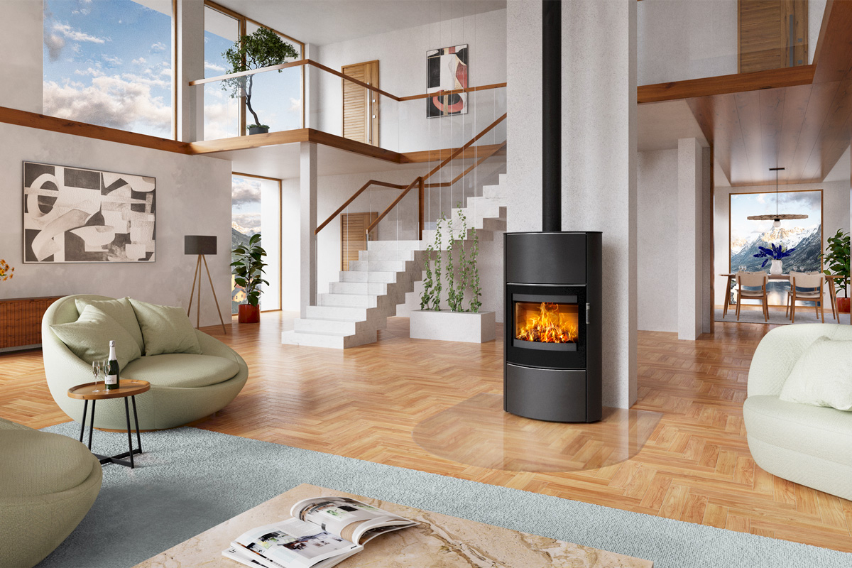Groß und dennoch elegant wirkt das hohe Modell auf seinen Betrachter und wird dadurch zum wahren Blickfang. Die große und breite Scheibe bietet einen atemberaubenden Blick auf das Flammenspiel des Feuers und mit Zusatzspeicher ausgestattet erfreut SINEOS H noch Stunden nach erlöschen des Feuers mit wohliger Strahlungswärme.